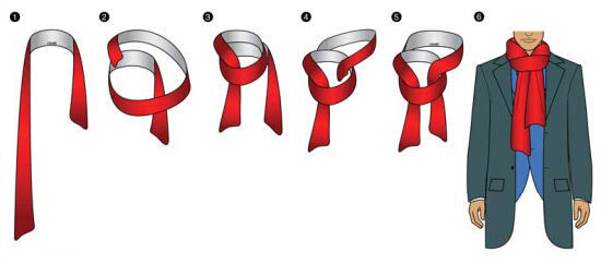 也是常用系法之一,將圍巾對折后搭在脖子上,散開的一端穿插進(jìn)閉合的一端,再拉緊,我們稱之為“男士圍巾的中國結(jié)系法”。適合長款圍巾和較冷的天氣。