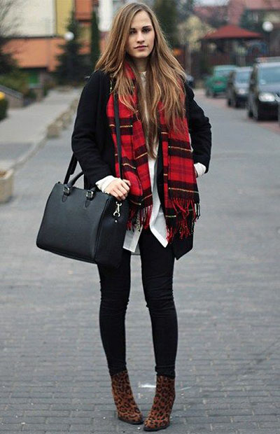 它是所有圍巾的標配車型,不挑顏色,不挑花紋。注意材質就可以。另外,紅、寶藍等艷色配黑,很容易出彩。