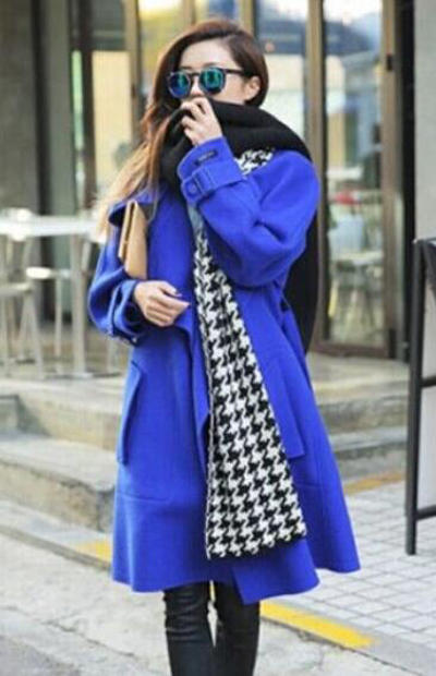 藍色的外套屬于冷色調,最保守的依然是白色,選擇長款黑白千鳥格圍巾,還可以搭配出海洋色的效果,清新又很有style~ 另一個稍微出彩一點顏色,建議可以來條橙色的圍巾,綜合一下,不過熒光橙請慎用,搭的不好會土的掉渣。