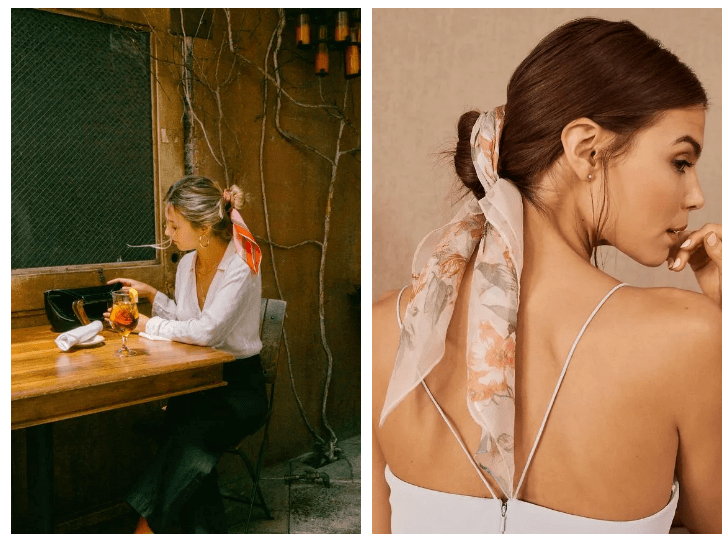半包裹式的用法,充滿了復古風情,在露出額頭部分的頭發,在花紋的選擇上以格紋和碎花為主。