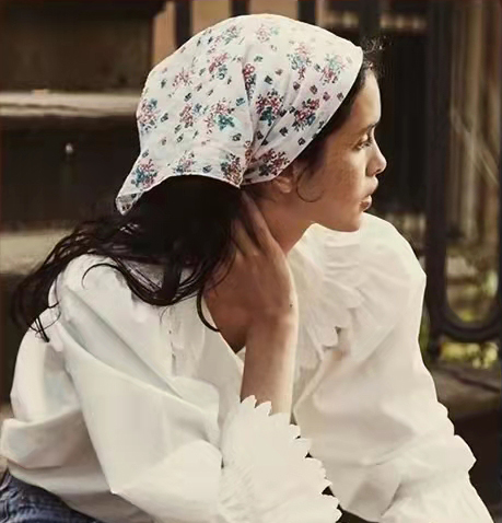把絲巾展開全包裹在頭上,賦予了絲巾野性和叛逆的氣質,在夏季也可以用來防曬。