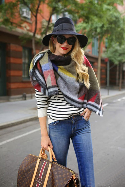基本款的條紋毛衣和牛仔褲的搭配未免過于保守,雖不用擔心會出錯卻少了些兩點,加上一款時尚圍巾就不同了,隨意搭上即可化身時尚達人,如果再來帽子墨鏡大包包,那種霸氣將勢不可擋,潮流焦點非你莫屬。