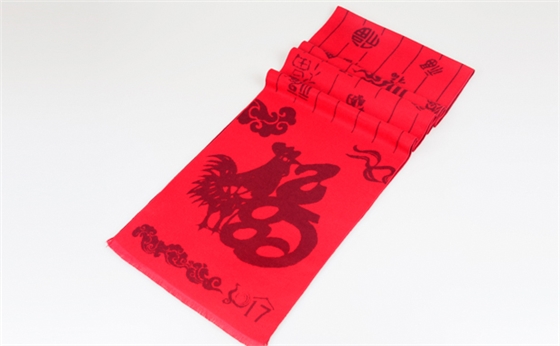龍翔福字紅圍巾款式多樣。招財進寶,福祿壽喜等多個福字紅圍巾一直都是龍翔在過年前和年后前期著重生產(chǎn)的紅圍巾。2017年的雞年更是龍翔的主打提花紅圍巾,為2017年增添了更加紅火的感覺。