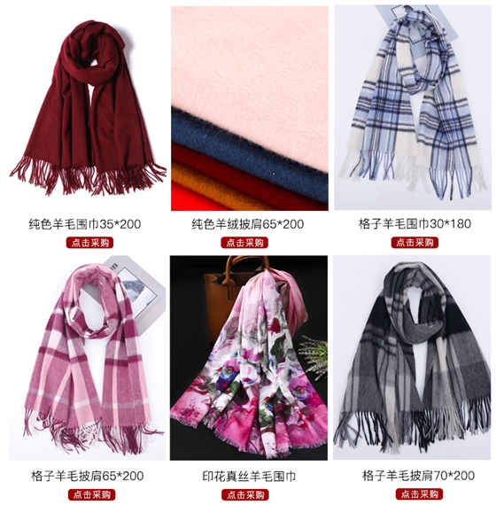 圍巾披肩的款式尺寸有多種,客戶可以根據需求定制尺寸,如30*180、65*180等。