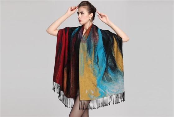 龍翔紡織推出的油畫圍巾,沒有風景,沒有實物,只由不同的顏色完美的拼接從而勾勒整塊圍巾。無論是明亮的色彩對撞,還是同類色的拼接,圖案參差交錯,粗看繁雜紊亂,但實際色彩豐富,但不雜亂。它的藝術魅力可以感染一群人,震撼一群人。油畫圍巾中對立因素的色塊、視覺上特別搶眼的色塊是龍翔紡織設計師特別需要注意的地方,需要特別注意他們在畫面上的部署與安排。
