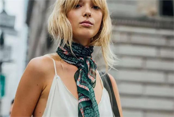 在頸部隨意纏搭,瀟灑自如。系一個可愛的蝴蝶結,或者來一個紳士的領結,整體時尚度大大提高,一條漂亮的100%真絲圍巾立刻讓你成為時尚達人。