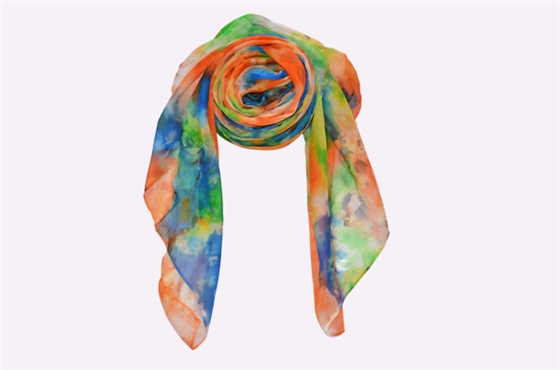 運用多種色彩結合的大面積印花顯得整條圍巾顏色絢麗又不俗艷。