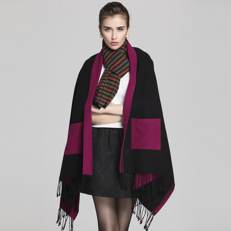 真絲拉絨口袋披肩